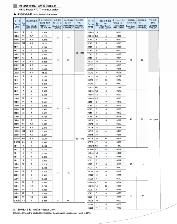 MF72 power NTC thermistor More size specifications: 10D-5,5D-7,5D-9,5D-11,10D-11,5D-13,5D-15
