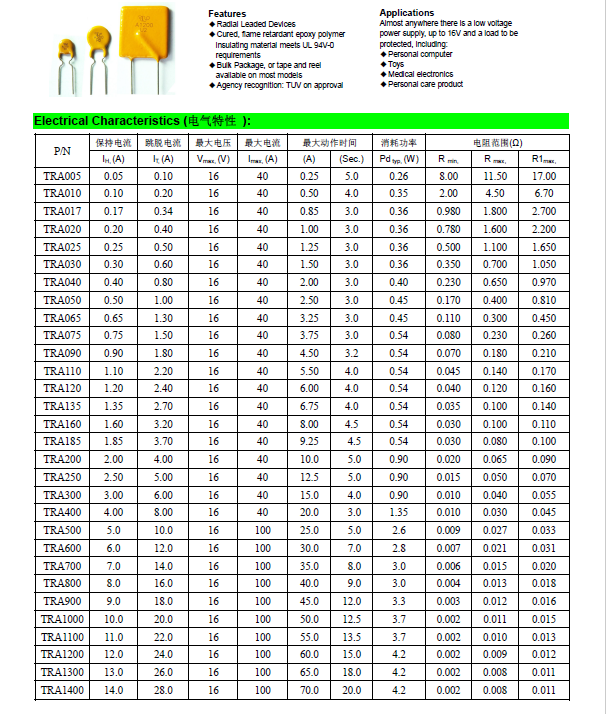orangeThe company has independent research and development team, the current is from 0.05A to14A, the size is 5MM-25MM, the voltage is from 16V to 600V. Product reliability and fast response time bring convenient selection and design to all types of end customers, resetting over-current fuse is divided into two kinds: fast break and slow break, the company adopt advanced polymer components in order to meet the needs of customers in various fields, which can be designed according to customer different product specification needs. If you need to know more products, please contact us by emails to consult..